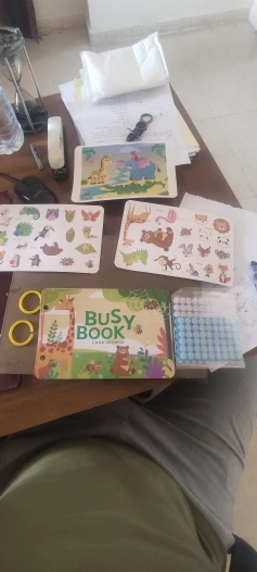 How does this "busy book" actually work? Are there stickers, velcro pieces, or is it just a regular picture book?