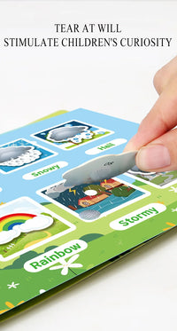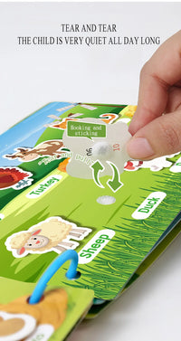 This isn't just a regular picture book - it's an interactive busy book that uses a "hooking and sticking" system (similar to velcro or hook-and-loop fasteners). Children can peel off colorful pieces featuring animals, letters, and numbers, then stick them onto designated spots on the pages. This hands-on activity keeps toddlers engaged as they match and place the pieces, helping them learn through tactile play. The tear-and-stick design allows kids to practice fine motor skills while learning to recognize different animals, letters, and numbers. The reusable pieces can be removed and repositioned multiple times, making it a quiet, mess-free activity that keeps children entertained and learning - perfect for keeping them occupied at home, during travel, or at preschool.