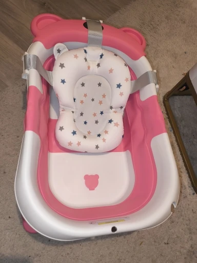 The tub is designed for ages 0–36 months with dimensions of 67 cm length × 42 cm width × 21 cm height, which can accommodate most babies and toddlers up to 3 years old. However, whether your child can use it until 36 months depends on their individual size and comfort. Larger or taller toddlers may outgrow it sooner, while smaller children may use it longer. The soft cushion is especially helpful for newborns, and as your baby grows, you can remove it for more space.